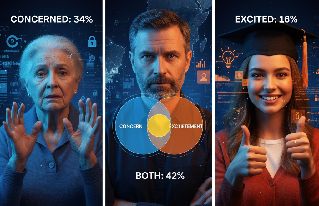 Pew Research’ün 25 ülkede yürüttüğü geniş çaplı ankete göre, yapay zekânın yaygınlaşması karşısında çoğu insan “karışık duygular” içinde. ABD, İtalya, Avustralya, Brezilya ve Yunanistan’da katılımcıların yarısı “daha çok endişeli” olduğunu söylerken, hiçbir ülkede “daha çok heyecanlı” diyen grup çoğunluğu oluşturmadı.
