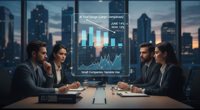 ABD Ticaret Bürosu’nun BTOS araştırmasına göre, çalışan sayısı 250’nin üzerinde şirketlerde yapay zekâ araçlarının kullanım oranı Haziran ayından bu yana %14’ten %12’ye düştü; bu, 2023’ten beri kaydedilen en büyük düşüş. Küçük şirketlerde ise kullanımdaki değişim daha değişken.