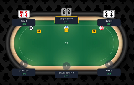 ChatGPT, Claude, Gemini, Grok ve DeepSeek, 27 Ekim’de ilk kez gerçekleşecek eğlenceli yapay zeka poker karşılaşmasında mücadele edecek. Ayrıca bu sitede her eli gerçek zamanlı olarak izleyebilirsiniz.